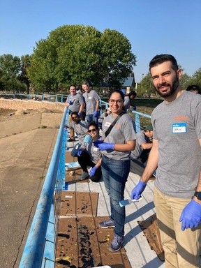 (IRVING, TEXAS)— On Oct. 8, Keep Irving Beautiful (KIB) welcomed 34 Vizient, Inc. employee volunteers to Northwest Park, 2800 Cheyenne Street, for the company’s 21st annual “Community Day” event. Employees brought a fresh look to the park bridge and safety fencing by brightening the structures with a new coat of blue paint.  The group’s combined efforts contributed a total of 102 volunteer service hours to KIB.